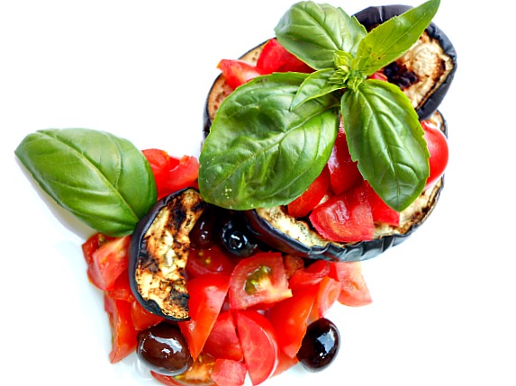 Taglio le melanzane a fettine di circa 1cm. Le griglio senza aggiungere olio e le metto da parte. In una padella con olio origano e sale faccio rosolare l’hamburger. Io vi consiglio gli hamburger di chianina. A metà cottura sfumo con 1/4 di bicchiere di vino bianco. Taglio dei pomodorini in 4 parti, e li condisco con olio extra vergine, basilico fresco, olive nere, sale e origano. Ora basterà assemblare il sandwich, posizionando alla base del piatto una fetta di melanzana, poi l’hamburger, poi ancora una fetta di melanzana ed infine i pomodorini. Aggiungete un filo di olio d’oliva. Facilissimo, veloce da preparare, e molto gustoso. Volendo potete renderlo più saporito mettendo anche del formaggio scioglievole sull’hamburger! L’ho abbinato a un Syrah che è un rosso robusto dal gusto pieno e intenso che ben si sposa con le verdure grigliate.