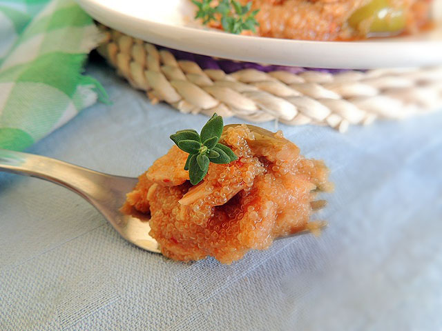 In una padella facciamo rosolare l’aglio sbucciato ed il prezzemolo tritato nell’olio, assieme al peperoncino. Appena saranno ben dorati aggiungiamo il tonno, i capperi tritati, le olive Ficacci denocciolate e a pezzi. Facciamo rosolare ancora 10 minuti aggiustando di sale e togliamo dal fuoco. Portiamo a bollore abbondante acqua salata, versiamo l’amaranto e facciamolo cuocere 20 minuti circa. Sgoccioliamolo poi con un colino a maglia fine ed amalgamiamolo al condimento di tonno ed olive. Serviamo caldo oppure a temperatura ambiente.