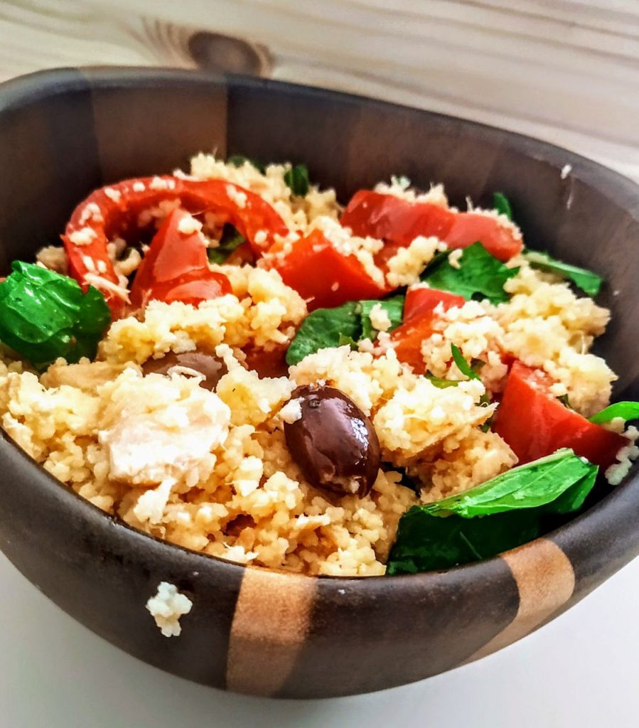 Il Couscous salmone peperoni e olive è un piatto senza glutine, a base di pesce e ricco di fibre e proteine. Da preparare anche in anticipo.