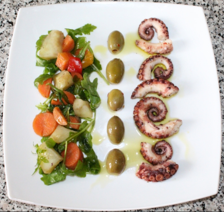 Insalata mista con polpo e olive verdi