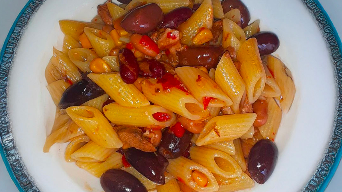 ร davvero semplice: ho saltato l’insalata alla messicana in padella e aggiunto le olive. Poi ho cotto la pasta al dente e l’ho terminata di cuocere direttamente nel condimento, per amalgamare tutti i sapori.