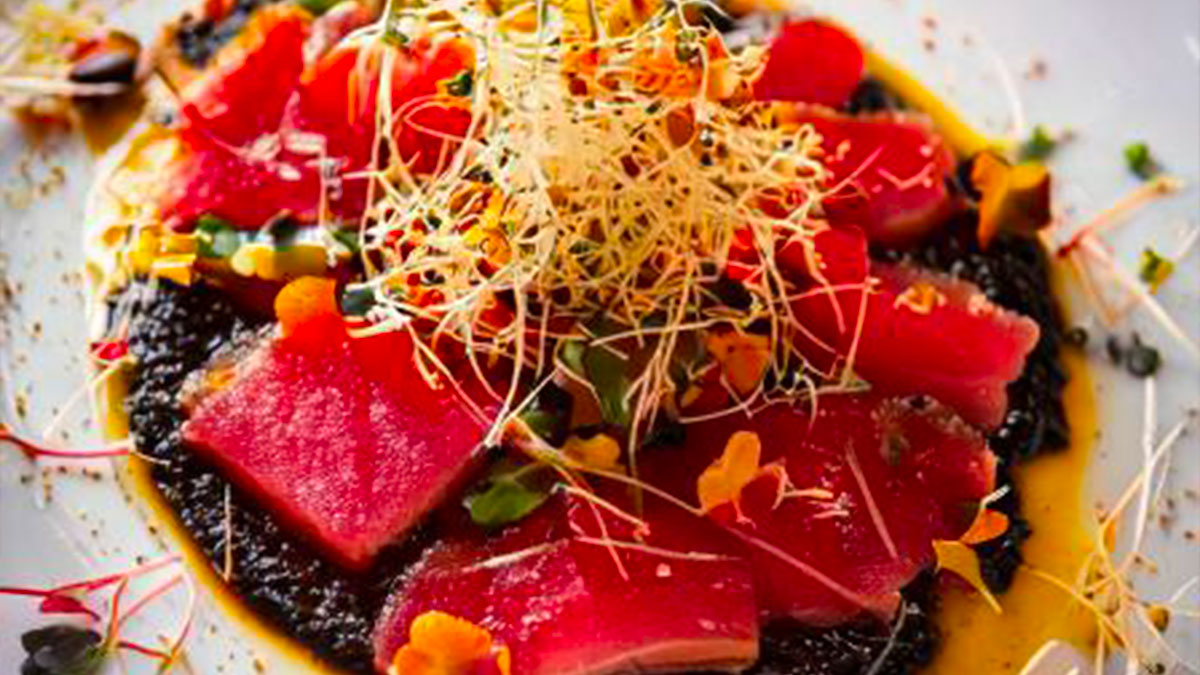Tataki di Tonno con Crema di Olive Nere: un piatto elegante e raffinato, dove il contrasto tra la freschezza del tonno e la profondità delle olive nere si esalta con una cialda croccante di Parmigiano. La combinazione di sapori intensi e consistenze diverse rende questo piatto perfetto per una cena gourmet, dove ogni ingrediente è pensato per creare un’esperienza sensoriale unica.
