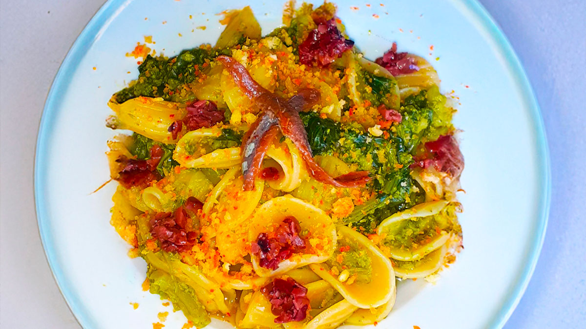 Le orecchiette con cime di rapa e filetti di acciughe sono un piatto tipico della cucina pugliese, semplice ma ricco di sapori autentici. La combinazione delle orecchiette, pasta fresca tradizionale, con il gusto deciso delle cime di rapa e la sapiditร delle acciughe rende questo piatto un perfetto equilibrio di ingredienti freschi e intensi. Facile da preparare, รจ un piatto che racconta la tradizione e lโamore per i sapori genuini del sud Italia.