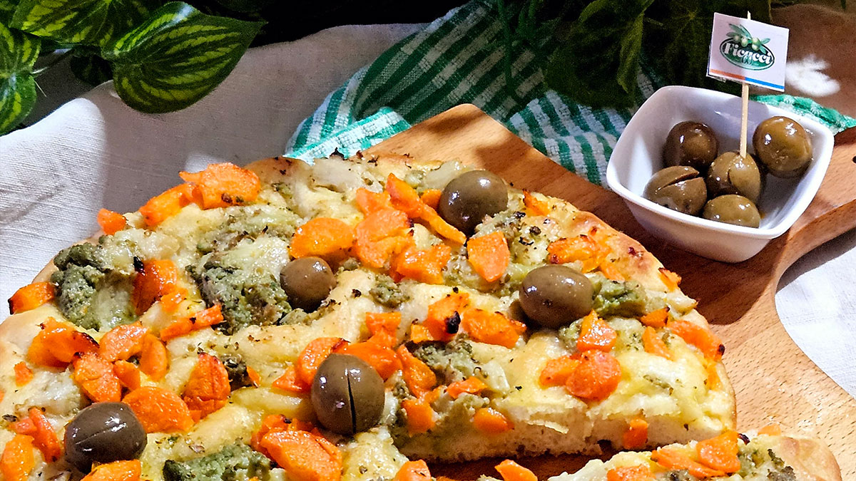La tua Focaccia veloce con broccoli, carote e olive è pronta, Buon appetito!!